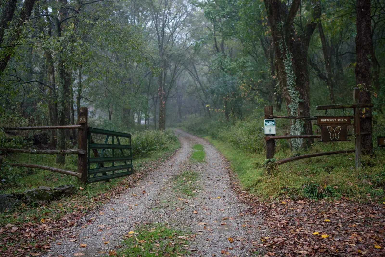 From Nashville, follow I-40 East to Exit 254. Turn right at the top of the exit ramp towards Alexandria. Drive 100 ft and turn left onto Colonel Bernie S Bass Hwy (Highway 141/53 North). You’ll drive a short mile through the unincorporated community of New Middleton and take the first road on your left, which is Mulherrin Road. Look for the white fence around a red brick home. If you cross the Woodrow Wilson Winfree Bridge or the New Middleton Elementary School, you’ve passed the road. Drive 1 3/4 miles on Mulherrin Road back under the interstate and through some beautiful farm country. You’ll make your way up a small hill and around a sharp “blind” curve, cross a small bridge and a few feet later turn right on to Dyers Branch Road. Look for the red barn with two small steel silos on the corner. Drive exactly 2 miles and turn right onto Bussell Lane. There is a wooden butterfly hanging on a post next to the road sign and a white house with black shutters on the corner when you turn. You’ll drive through our neighbor’s farm, probably will be escorted by a friendly dog part of the way. You’ll pass an aging barn or two. As you wind your way into the hollow the road will narrow a little more, the forest will slowly engulf you as you make your way to our gate and Butterfly Hollow sign.