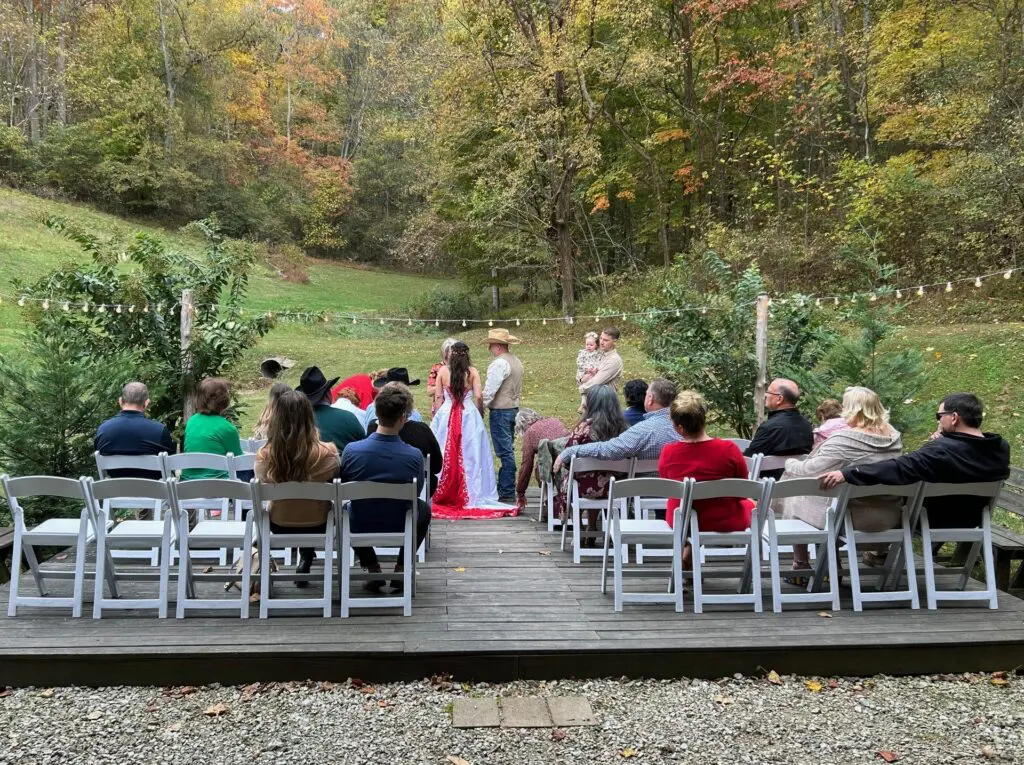 Overlooking the rolling greenery of the property, the Hillside Deck blends elevated views with a relaxed, intimate setting. This space allows you and your guests to take in the natural beauty of the Hollow while enjoying a slightly more structured ceremony area. It’s a great option for couples who want a scenic backdrop with a comfortable, gathering-style atmosphere.