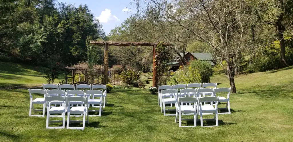 Tucked along the edge of the woods, the Hillside Gazebo offers a romantic and timeless setting for your ceremony. Surrounded by flowers and overlooking the peaceful hollow, this space creates a naturally beautiful backdrop with minimal need for décor. It’s the perfect choice for couples who want a classic outdoor wedding moment with seating for guests and a serene, private atmosphere.