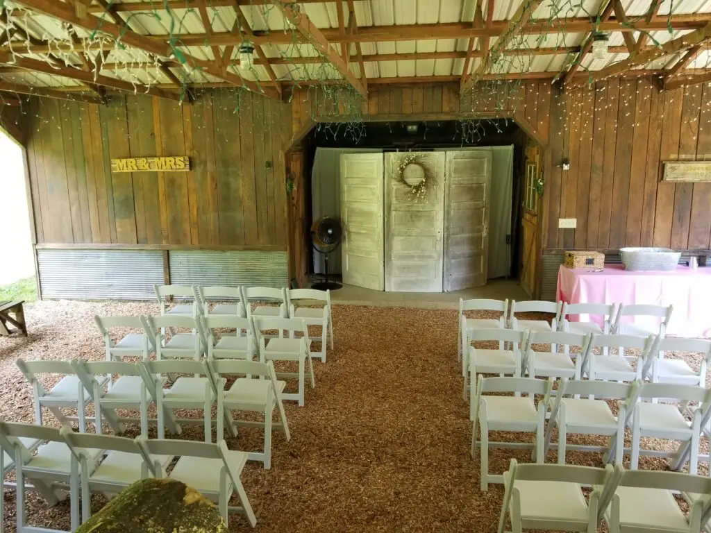 The Open-Air Barn combines rustic charm with functional elegance, offering a covered space that still embraces the outdoors. With its timber framing and open sides, it creates a warm, inviting setting for ceremonies or receptions while keeping guests comfortable. This space is ideal for couples looking for a laid-back, countryside feel with the flexibility to celebrate rain or shine.